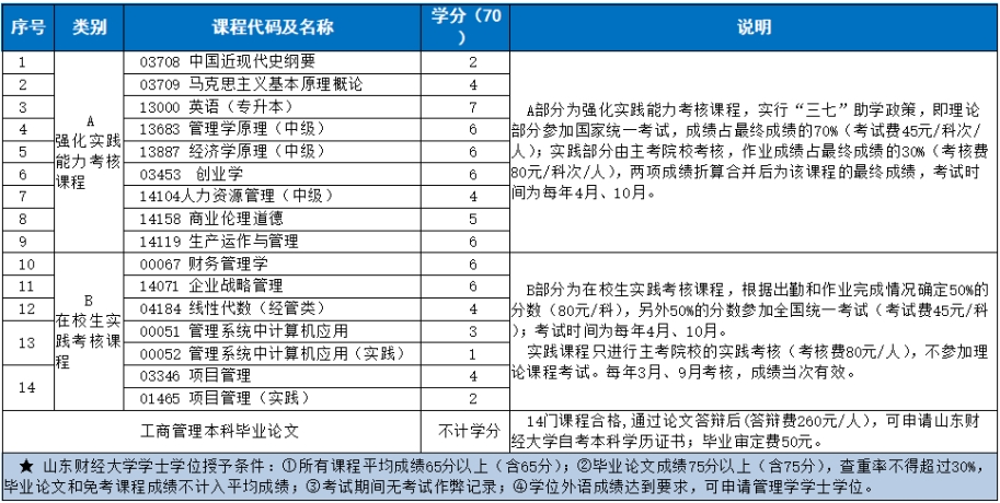 (二)工商管理(专升本) 本科文凭及学士学位颁发院校:山东财经大学 专业代码:120201K